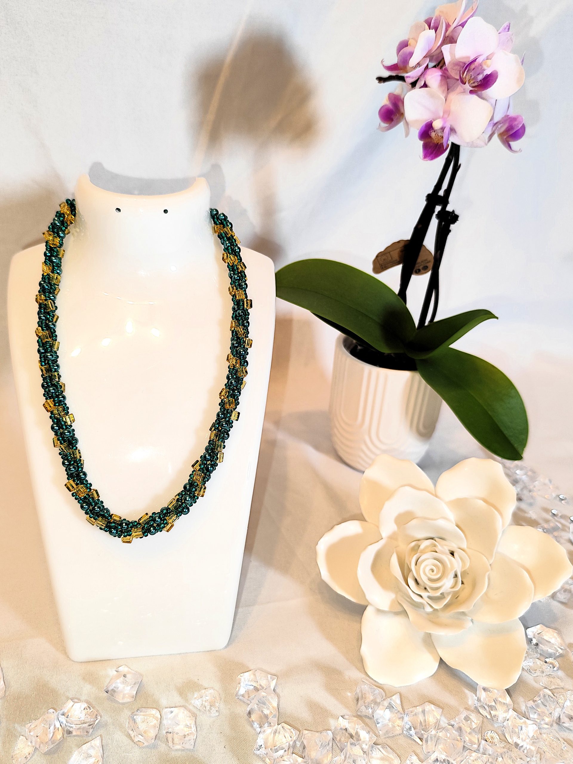 Grüne Perlmutt-Perlenkette mit Goldakzenten